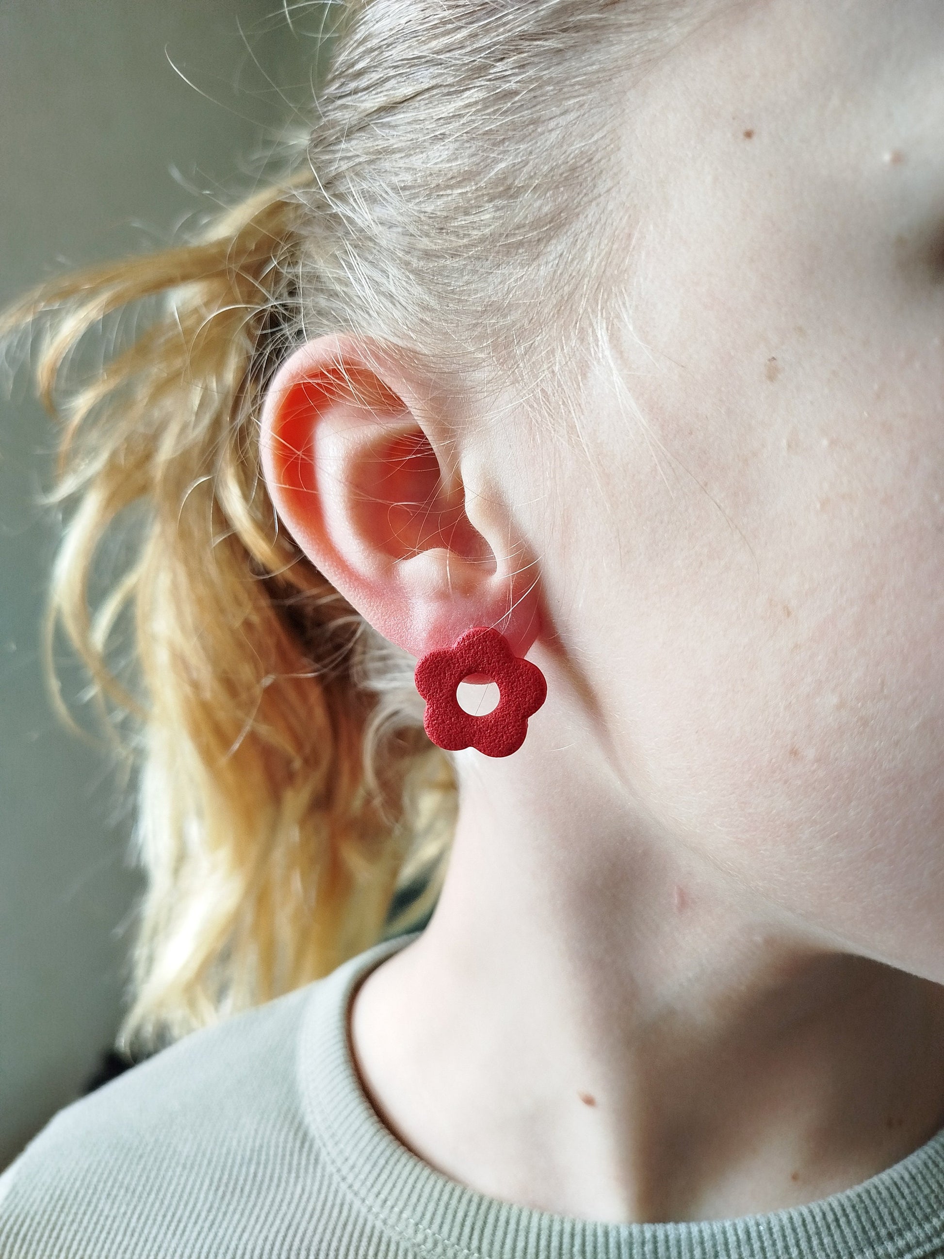 Boucles d'oreilles fleurs en argile polymère.